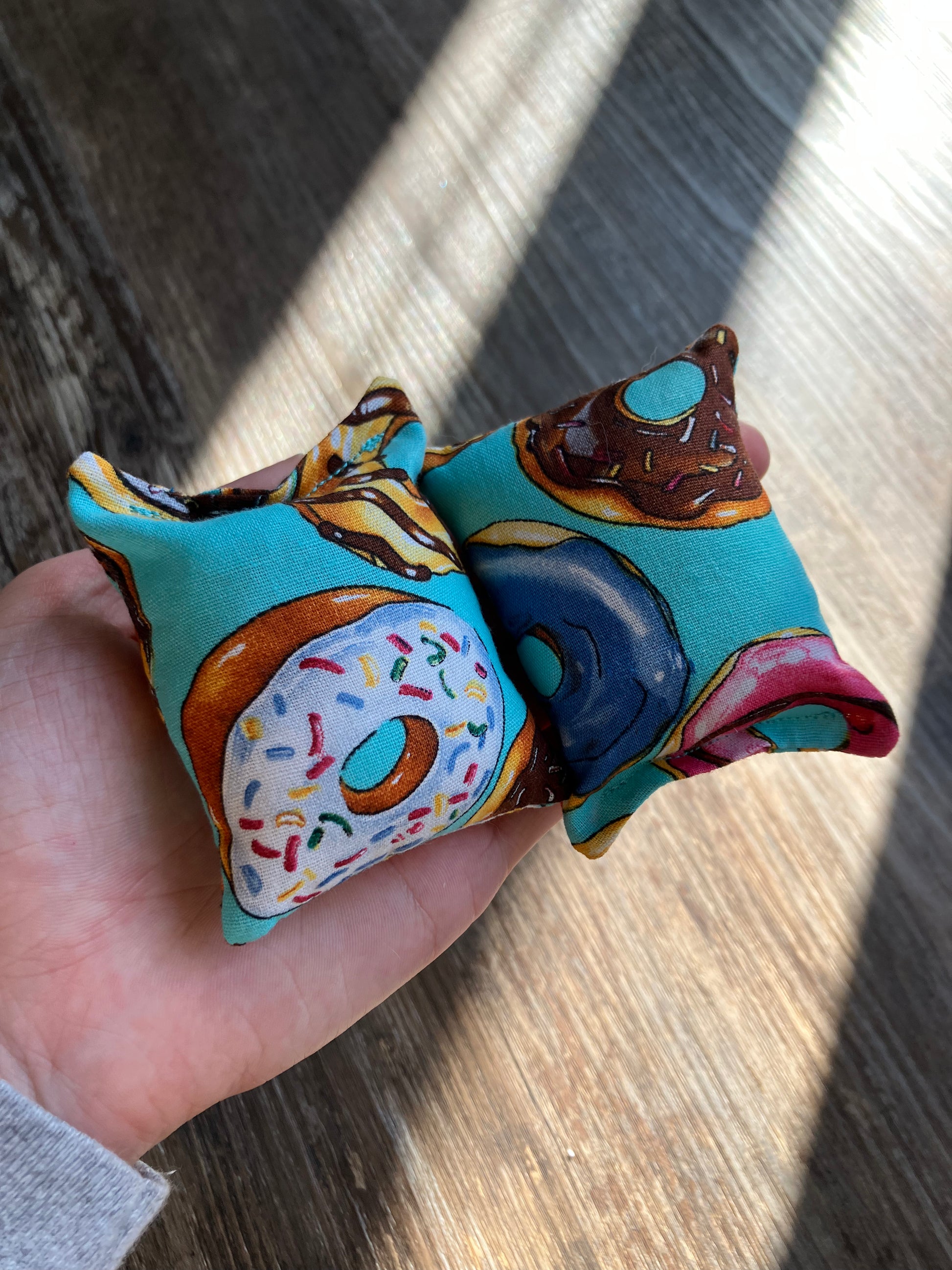These adorable cat toys are a household favorite here! They are super cute, and super fun for the kitties!! I make them using scrap fabric, pollyfill, and catnip.