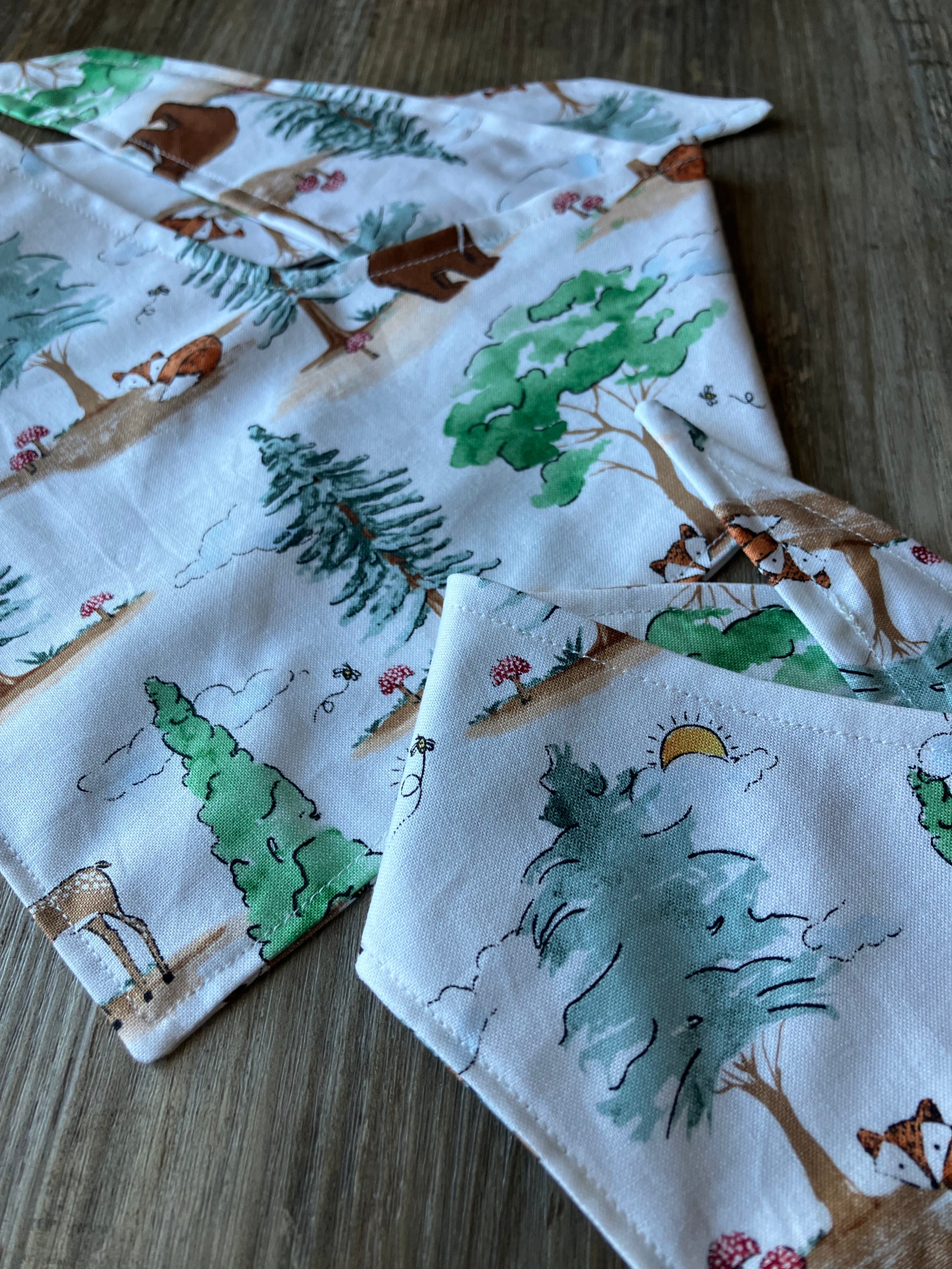 When getting a MPW bandana, choose what size you think would fit your pet best. If you are not sure on sizing, feel free to message me, I am always happy to help! My bandanas are all tie on bandanas, which easily just tie around your pet's neck. They are designed to be sort of V-shaped, which helps with shaping your pet's neck and also minimizing extra bunched up fabric. I leave 8"-10" of tie room alone on my bandanas, so thicker pups or fluffy kitties have extra wiggle room. Again if you have any questions on sizing, don't be afraid to ask me! :)